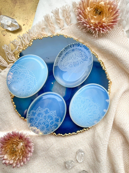 Etched Opalite Crystal Worry Stone - Assorted Mandalas